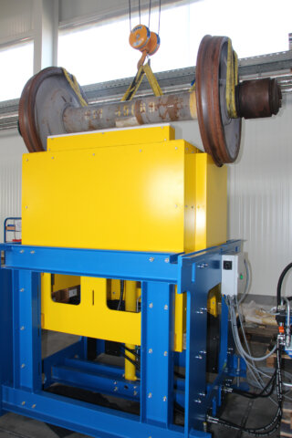 Damit lässt sich der Radsatz auf eine ergonomische Höhe heben, um manuelle Arbeiten wie visuelle Kontrollen und Messungen oder die Montage oder Demontage von Lagern usw. durchzuführen.