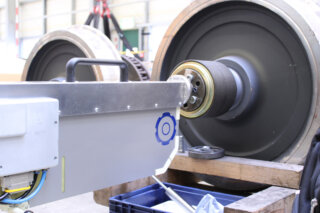 Die stationäre Ultraschall-Prüfanlage für Radsatzvollwellen führt eine automatische Ultraschall-Fehlerprüfung an Vollwellen im ausgebauten Zustand durch. Sie wird in Radsatzwerkstätten eingesetzt und kann in eine vollautomatische Produktionslinie integriert werden.
